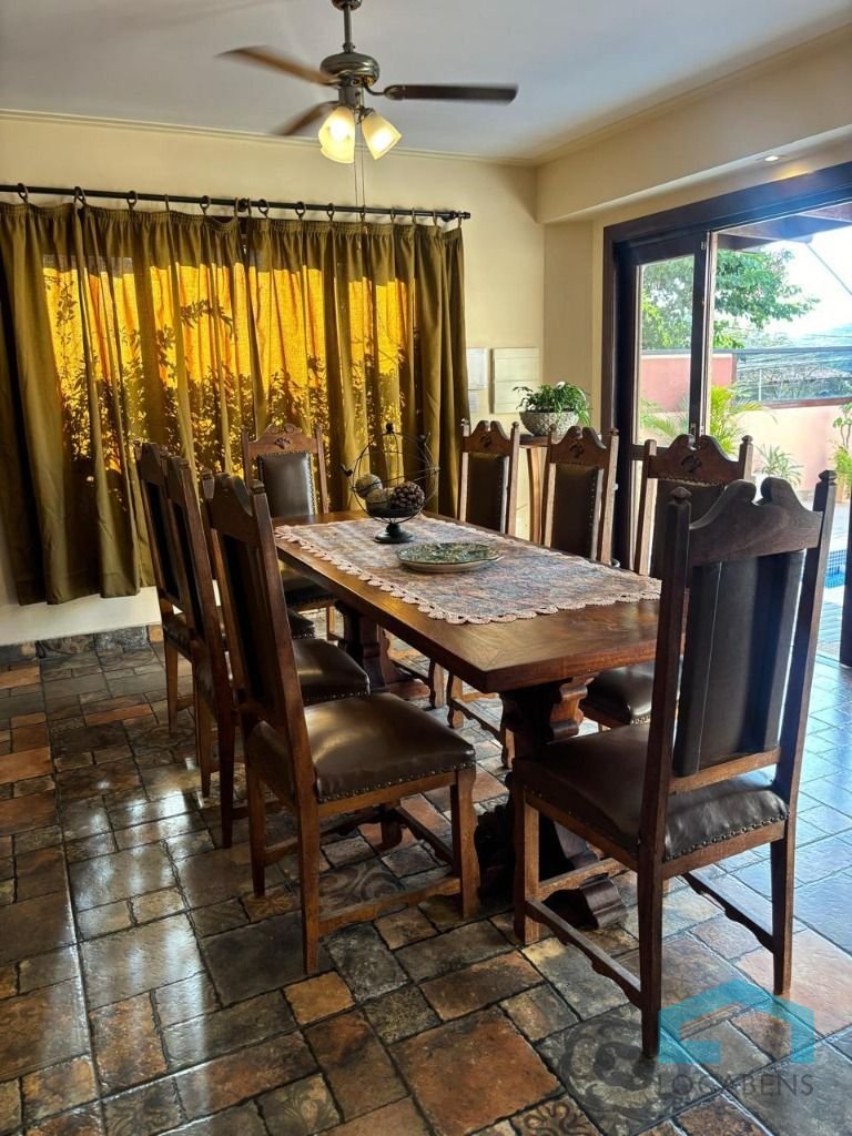 São três suítes no piso superior, incluindo uma ampla suíte máster com closet, sacada panorâmica e banheira de hidromassagem, além de uma suíte térrea perfeita para hóspedes. A sala de estar é espaçosa, com lareira, pé-direito alto de sete metros, ar-condicionado e ventilador de teto. A sala de jantar tem lavabo e uma charmosa bay window.