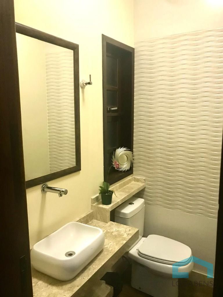 A casa conta ainda com jardim de inverno, quintal gramado com horta, garagem para três carros com portão automático, escritório, mezanino e depósito no sótão. Possui aquecimento solar, cabeamento de TV e internet em todos os ambientes, além de acabamento de alto padrão em porcelanato.